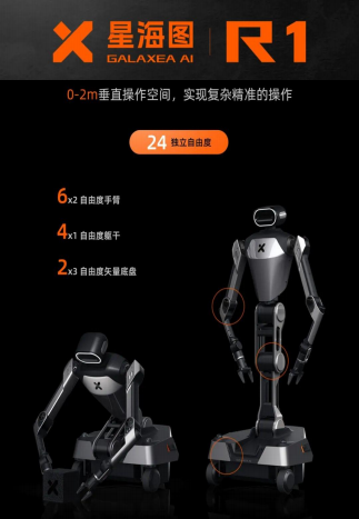 近日,在世界機(jī)器人大會上,星海圖首次公開了從硬件到軟件完全自主正向研發(fā)的全尺寸輪式雙臂具身本體R1,能夠有效執(zhí)行全場景、全地形、全空間的通過,完成搬箱子、撿零件、開關(guān)門、按按鈕等操作任務(wù)。