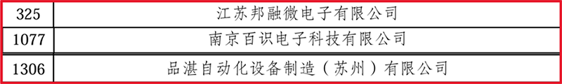 近日,江蘇省工信廳發(fā)布了《關(guān)于江蘇省2024年度省級(jí)專精特新中小企業(yè)(第二批)和 2021年度省級(jí)專精特新中小企業(yè)復(fù)核通過(guò)企業(yè)名單的公示》,江蘇邦融微電子有限公司、南京百識(shí)電子科技有限公司、品湛自動(dòng)化設(shè)備制造(蘇州)有限公司3家創(chuàng)投集團(tuán)被投企業(yè)入選第二批專精特新中小企業(yè)。